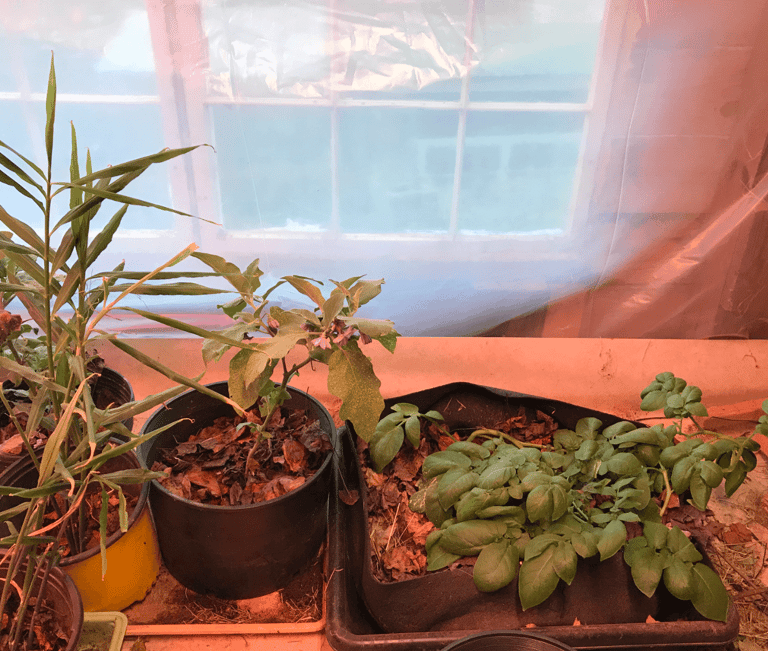 "I dug up, pruned back, and potted out a tomato and a pepper plant, both blooming in 18F weather in December."