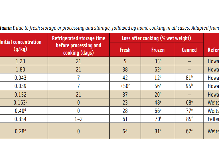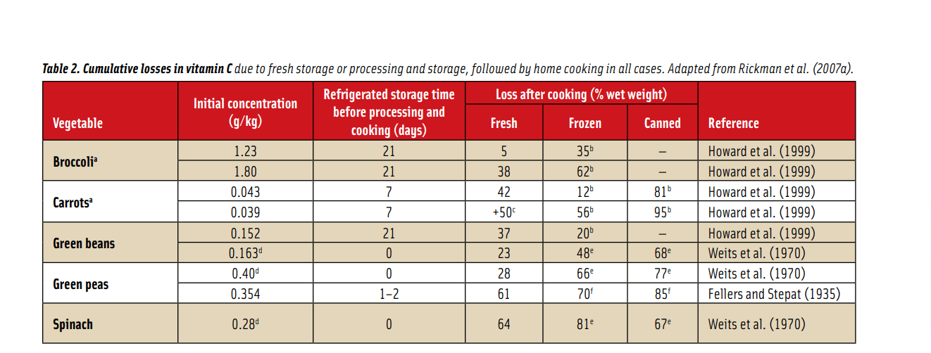 Spinach loses 100 percent of its Vitamin C after only a week of refrigeration.