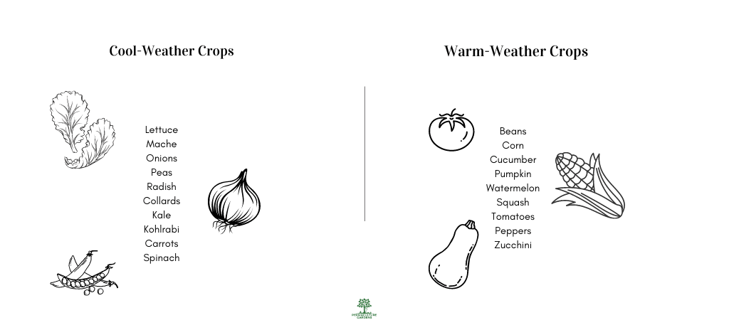 Plants in temperate climates can be organized according to weather: Cool-weather and Warm-weather crops