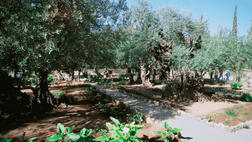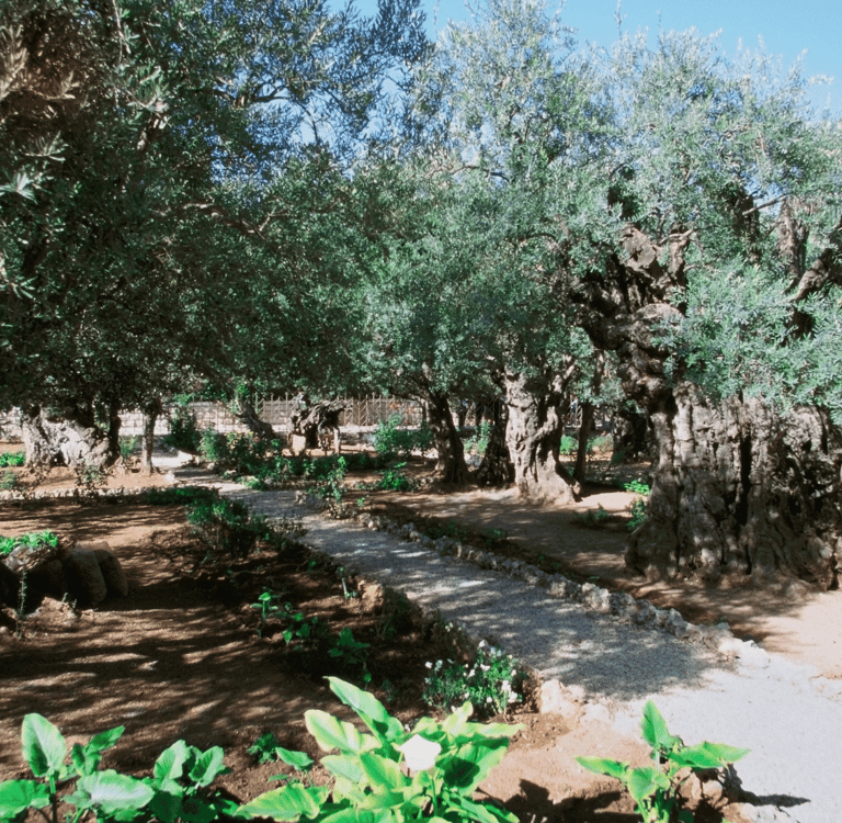 Below is the Garden of Gethsemane, which is in a grid pattern.